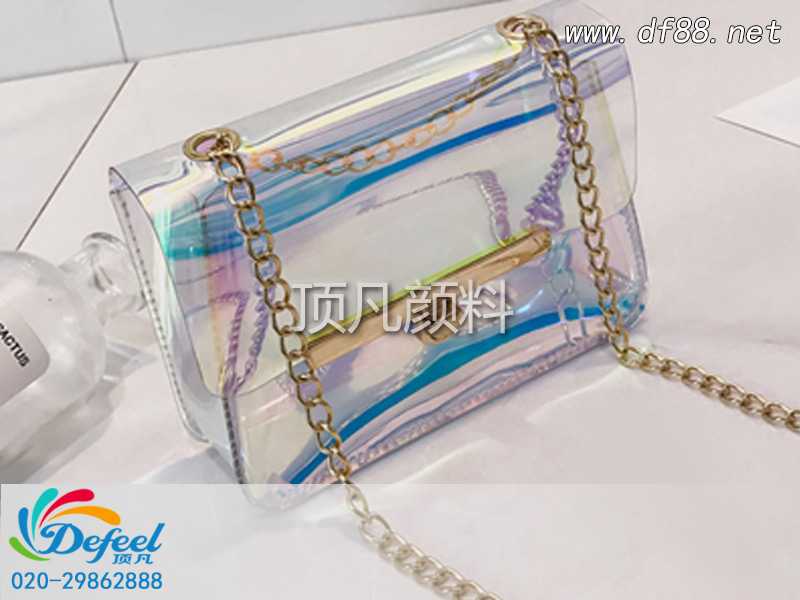 鐳射包包因?yàn)槠涠嗖拾邤痰撵挪市Ч艿奖姸嗯鷤兊那嗖A,不管是在夏季給人帶來(lái)的清涼感受還是在秋冬季增添一份多彩,鐳射包包都是很好的選擇。這其中最大的功臣在于變色龍粉,這種變色龍是一種特殊的顏料,它是以不同徑厚比嚴(yán)格控制粒徑和基材品質(zhì)為基礎(chǔ),通過(guò)多層和多種金屬氧化物精確控制包覆厚度,從而制備的超強(qiáng)色度且隨角異色,是一種創(chuàng)新光學(xué)效果的特殊顏料。